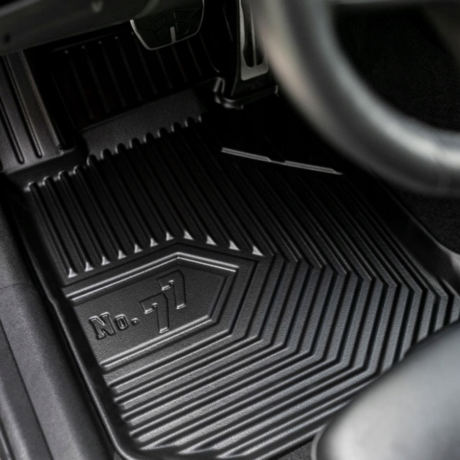 Saugumas ir patogumasNr.77 turi gamykliškai sumontuotus originalius tvirtinimus (jei numatyta automobilio gamintojo), todėl garantuojama, kad kilimėliai bus saugūs naudoti, neslankios ir nečiuožinės vairuojant. Dėka TPE medžiagos Nr.77 kilimėliai yra lankstūs, juos patogu įdėti ir išimti. | ![]() |