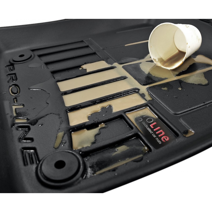 ProLine 3D kilimėliai automobiliams turi suformuotus itin aukštus šoninius bortelius, vietomis net iki 6cm aukščio, papildomai apsaugančius automobilio grindis, šoninius paviršius bei zoną po pedalais.