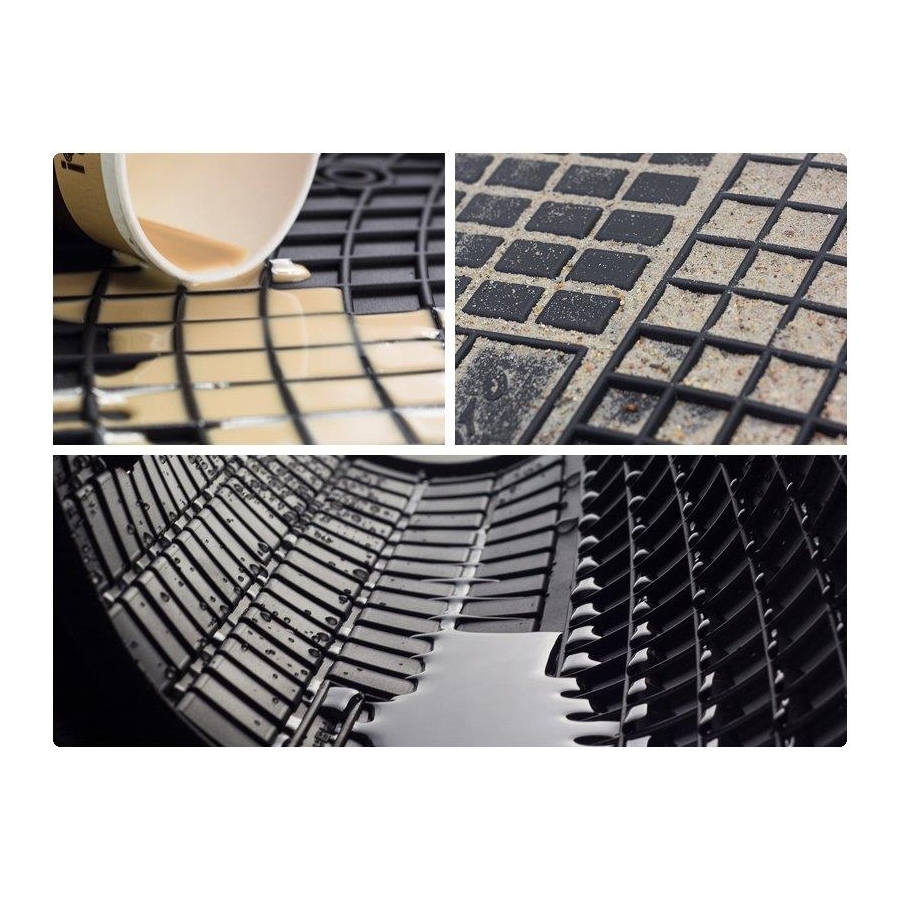 • Kilimėlių apatinė dalis per visą kilimėlio plotą turi specialius gumbelius, kurie dėka didelio skaičiaus sudaro didesnę trintį su automobilio dugnu ir neslidinėja, net jei ir nėra naudojami kilimėlių tvirtinimai.